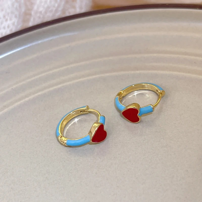 Brincos de argola em forma de coração com risca de rebuçado - Marisol