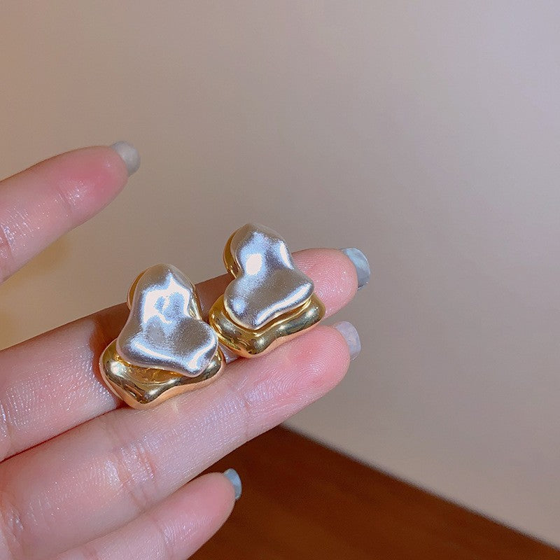 Brincos de pérola esculpida em forma de coração - Viviana