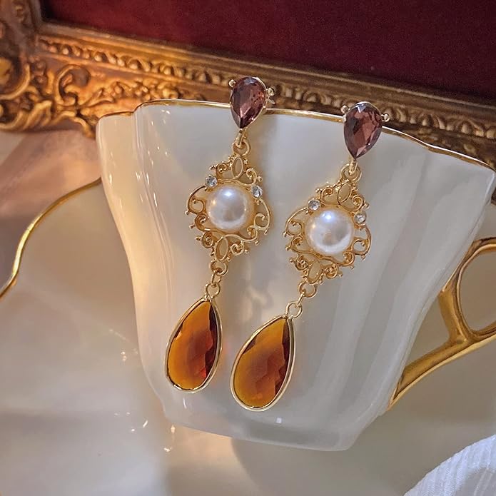 Com um design elegante e clássico, estes brincos em cascata combinam pérolas centrais com pedras em formato de gota e detalhes dourados intrincados. A composição cria um visual luxuoso e atemporal, ideal para realçar a feminilidade e o charme em ocasiões especiais. O toque vintage do dourado trabalhado adiciona um brilho refinado e sofisticado.