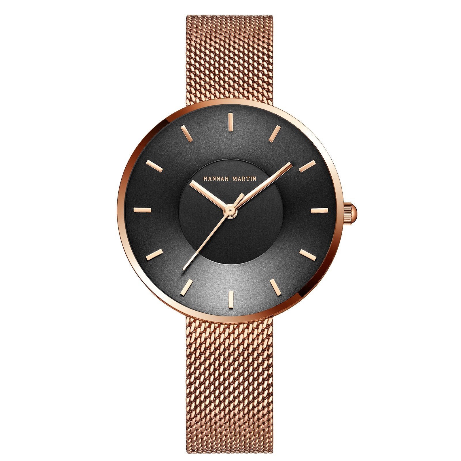 Das schlanke Metallgehäuse schmiegt sich natürlich an das Handgelenk an und bietet den ganzen Tag über ein leichtes und angenehmes Tragegefühl. Das Metallarmband aus Mesh sorgt für einen flexiblen und sicheren Sitz und passt sich leicht an verschiedene Handgelenksgrößen an.