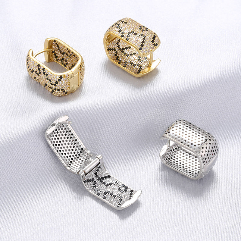 Com um design imponente e moderno, os brincos Cobra Chic destacam-se pelo padrão inspirado na pele de cobra, símbolo de força e elegância. As zircónias meticulosamente cravadas em tons contrastantes criam um efeito visual luxuoso, refletindo a luz de forma intensa e sofisticada. A sua forma geométrica dá um toque contemporâneo e ousado, tornando estes brincos o complemento perfeito para quem gosta de peças marcantes e cheias de estilo.