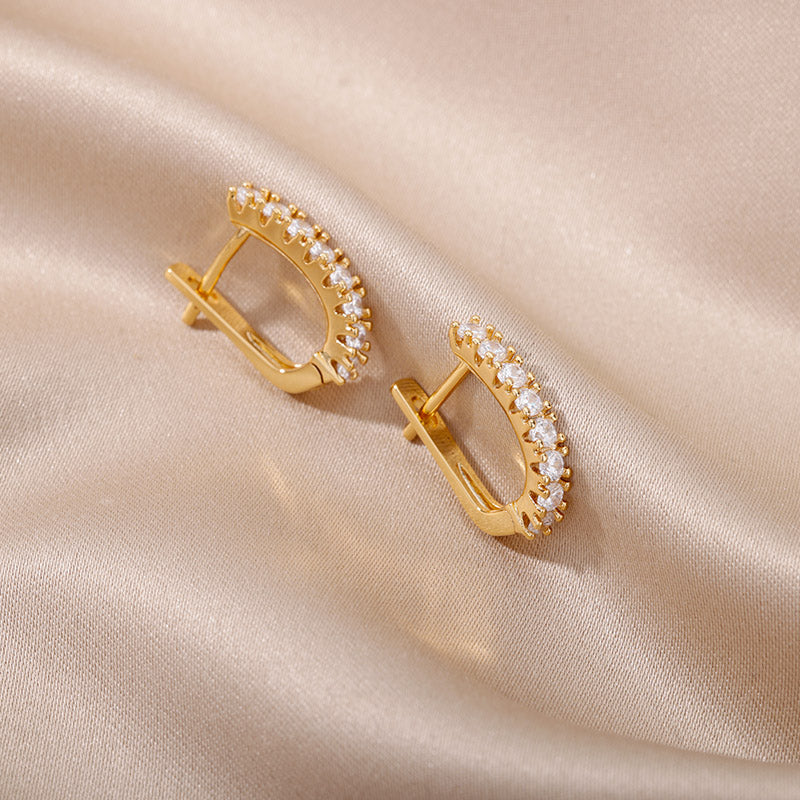 Estes brincos elegantes combinam o brilho delicado dos cristais com um design moderno e sofisticado, perfeito para realçar qualquer look. O formato curvado reflete a luz de forma subtil, acrescentando um toque refinado que complementa tanto produções formais quanto visuais do dia a dia.